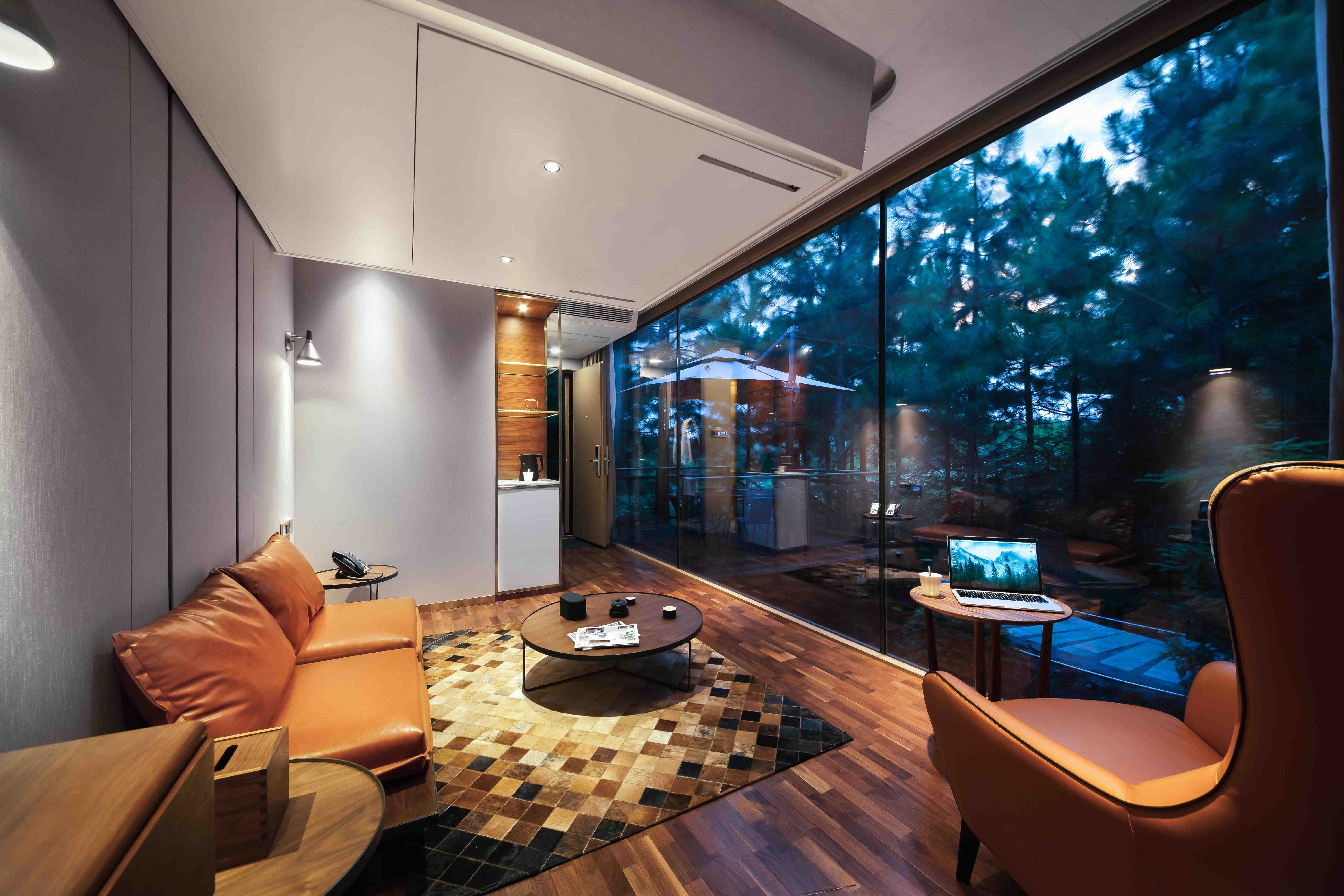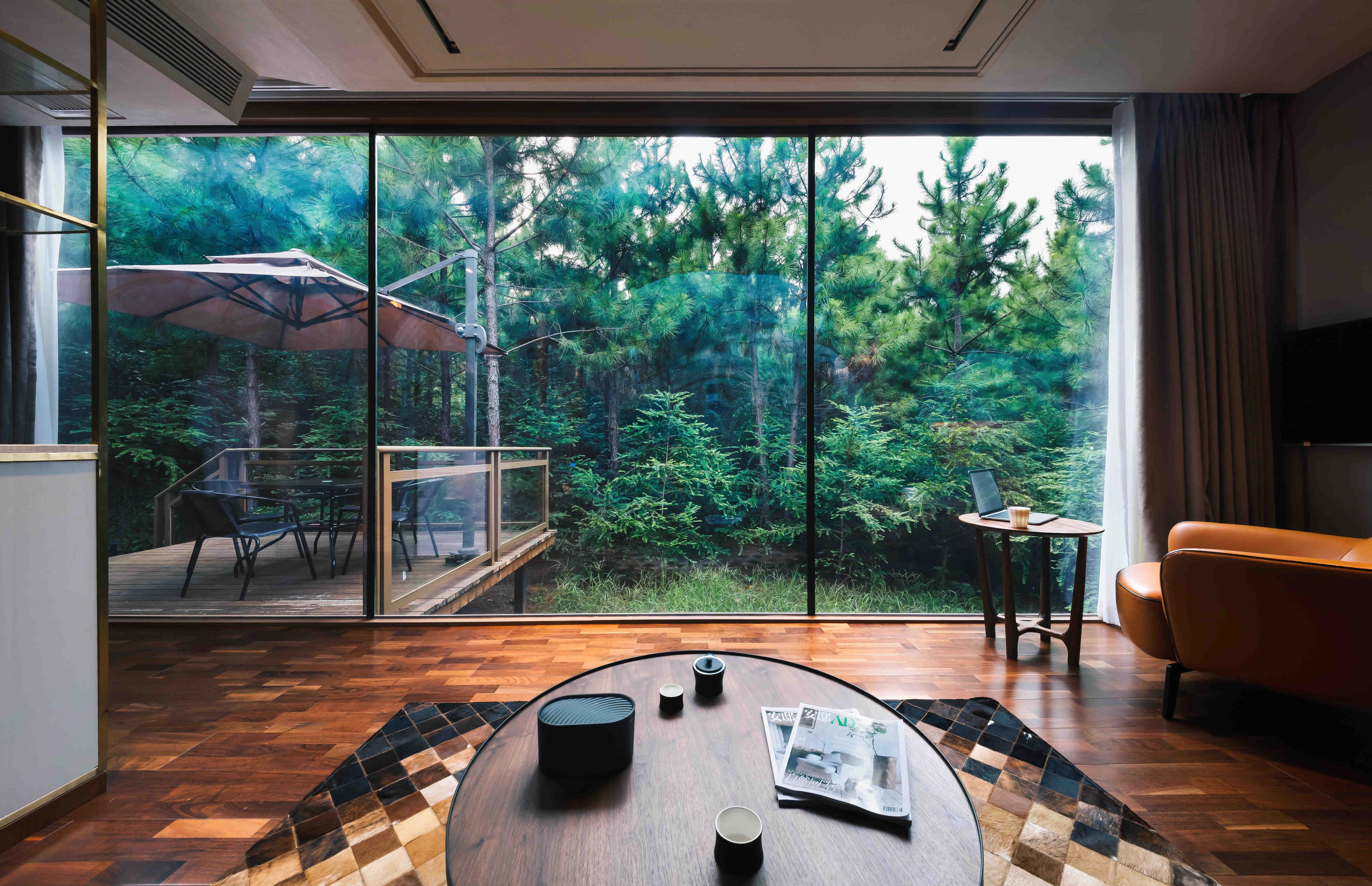 遊客在房間里,一眼望去,就可以享受到大自然與建築藝術的完美融合。
