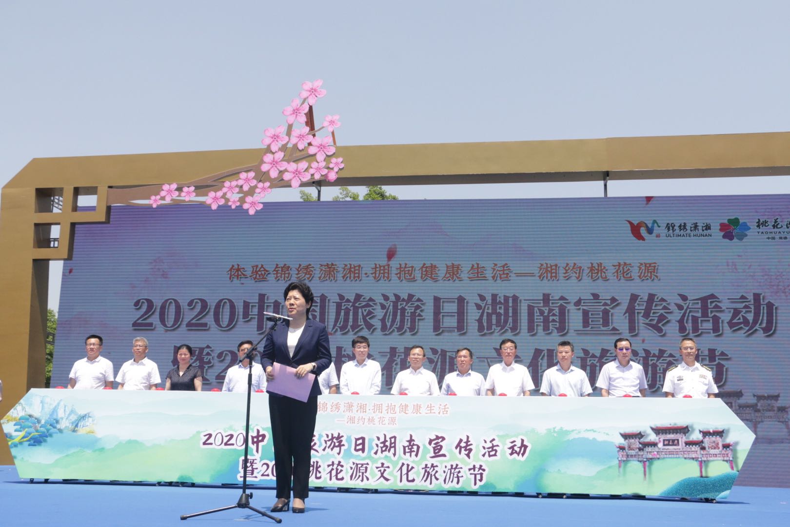 【香港商報網訊】記者 張思靜 報導:5月19日,2020中國旅遊日湖南宣傳活動﹒湖南非遺購物節啟動式暨2020桃花源文化旅遊節在常德桃花源啟動。本次活動由湖南省文化和旅遊廳、常德市人民政府主辦,湖南14個州市組團參加,旨在推進文化旅遊整合發展,樹立湖南旅遊品牌形象,帶熱“湖南人遊湖南”。