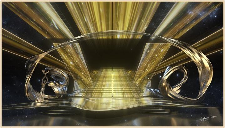 本屆舞美的主舞臺圍繞“金鷹三十,正當潮”主題展開設計,中央用漂浮的金色絲帶勾勒出30的字樣,通過多變的天幕舞臺營造出星辰大海的場景,寓意著金鷹獎30屆鬥轉星移、星光燦爛。