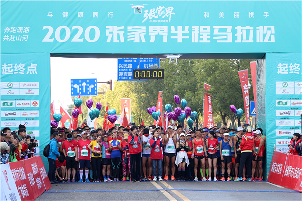 2020張家界半程馬拉松14日在張家界市民廣場鳴槍開跑,來自全國各地的5000余名選手齊聚張家界,用奔跑的方式感受這座城市的靈動與氣韻。