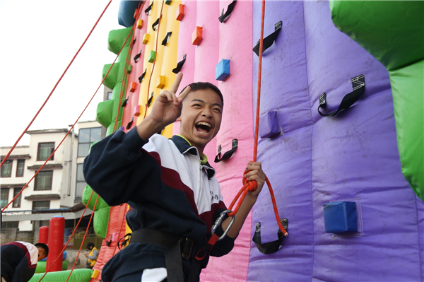 據悉,本次研學活動學生以班級為單位,參與各項素質拓展活動,包括三方拔河、挑戰粘粘牆、“漢諾塔”、“勇攀高峰”等,意在比賽中鍛煉學生意志力,深化學生對人生磨礪、感恩責任的認識,同時培養學生團隊意識,提升團隊協作能力。