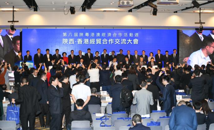 15日,陝西-香港經貿合作交流大會在香港會議展覽中心舉行。中聯辦副主任仇鴻、香港特別行政區政府財政司司長陳茂波、外交部駐香港特別行政區特派員公署副特派員楊義瑞以及陝西省副省長魏增軍等出席交流會。會上還舉行了重點項目簽約儀式,共簽訂合同項目19個,總投資82.11億美元