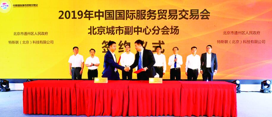 6月1日下午,2019年中國國際服務貿易交易會北京城市副中心分會場舉行簽約儀式,13家企業簽約落戶通州,協議投資金額443.7億元。