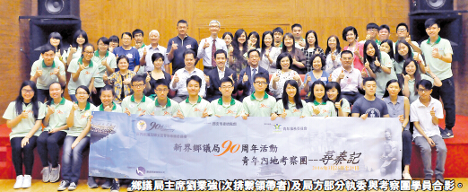 從2008年開始,由民政事務局青年事務委員會資助,鄉議局婦青會每年舉辦新界青年內地考察團,今年考察重點是「一帶一路」對西安古城及整個陝西省經濟發展的前景。5月7日局方舉行「尋秦記分享會暨嘉許禮」,會上該局主席劉業強表示,今年,局方從27個鄉委會和新界部分中學選拔30名學員參加考察團,到西安進行5天學習,是次學習考察加入「一帶一路」的元素,讓學員能夠全方位認識國家,了解國情,以達至立足新界,面向世界的宗旨。