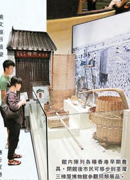 【說明】x0301.新界文物館閉館後,棚屋等建設會拆除。x0302.館內陳列各種香港早期農具,閉館後市民可移步到荃灣三棟屋博物館參觀同類展品。x0303.閉館後傳統祠堂的重構情景不復再現,有市民大嘆可惜。x0304.館內展示的客家衣飾,有助了解客家人的生活形態。