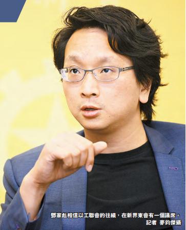 原為立法會勞工界議員的鄧家彪,秉承該會勞工界議員不連任的傳統,今年出選新界東,他在接受本刊專訪時表示,該會勞工界議員只能做一屆,故在4年中爭分奪秒做完議會工作,同時,通過立法會平台及所擔責的公職獲取市民支持、認受及提高知名度,為直選做準備,也是該會新舊交替,推動更加多人參與直選,擴充工聯會影響力。他表示,雖然上屆新界東直選黨友葉偉明因差數千票而落敗,但該會將沿著參政參選的路繼續走下去,其因,工聯會的政治影響力源於能夠令到「一國兩制」暢順,社會和諧,又能將市民的需要及問題帶入立法會解決,是工聯會政治影響的動力,亦是他個人的信心。