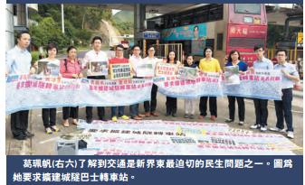 第一,她點出交通擠塞是新界東公認的迫切性難題;她指出當區很多交通路線,都是匯集經獅子山隧道、大老山隧道出九龍,早上交通擠塞的情况嚴重;她說即使是鐵路服務,情况都是擠擁,市民要乘馬鞍山鐵路列車,都要「等多幾班車」。
