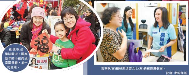 內地來港的苗小姐在2002年遷入頌安,她不但對葛珮帆連任表示十分支持,又表示很喜歡她在競選單張寫的「海納百川。我相信和而不同,無分黨派,包容是正道」。苗小姐在居住上遇上房屋署迫遷的問題,過往向其他議員求助都被拒絕,但當她來到葛珮帆辦公室求助時,葛的助理十分熱情,並積極跟進問題,令她感到十分感動。