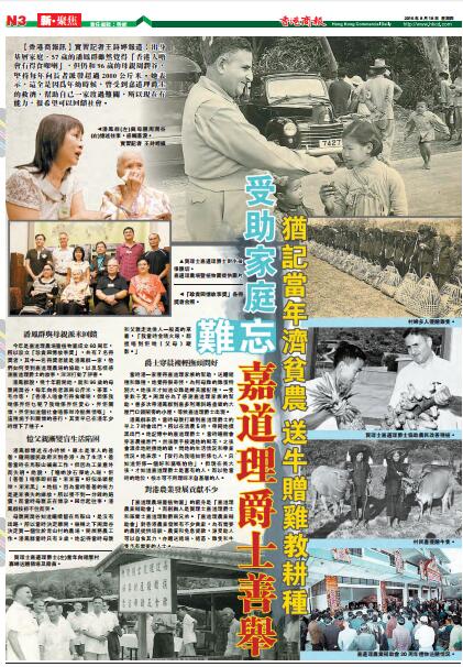 今年是嘉道理農場暨植物園成立60周年,所以設立「珍貴回憶故事獎」,共有7名得獎者,其中一名得獎者就是潘鳳群一家,他們如何受到嘉道理農場的協助、以及怎樣感謝嘉道理兄弟的故事,深深打動了評審。