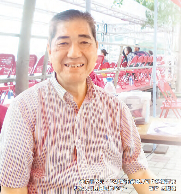 他感覺荃灣演變是一個新型社區的縮影,沙田、馬鞍山發展便是以荃灣為借鑑,而屯門只有住宅沒有商業帶動地區,就業機會少,最后,屯門區人士只有到市區找工作,故此,他認為,發展新型社區需要經濟和居屋兩者相結合,荃灣新市鎮發展可作為新界東北、大嶼山發展時參考,他希望政府在發展新市鎮前要考慮整體利益,有的好地方應該繼續保留并進行優化,希望未來新市鎮發展比早期的荃灣衛星城市發展得更加好。
