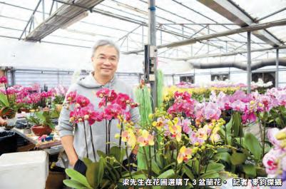 在千葉園所見,與往年一樣,許多客戶紛至沓來,其中,從事物流行業的梁先生表示,現時家住新界,每年主要買蘭花,偶爾亦會買菊花。蘭花是由2003年開始在此買,買后蘭花開花期持續至少有4個月,而其價格比市場便宜一、二成,品種選擇亦較多。今年同樣以逾2000元購買3盆蝴蝶蘭,主要選擇粉紅色,於飯廳、客廳各擺放一盆,最后一盆送給母親。