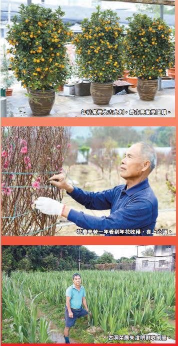 古洞南蕉徑老圍菜農朱淦明表示,今年種植2.3萬株劍蘭,由於天氣太熱不冷,故提早10多天收花。去年春節前收割了八成,今年種植量相若,今年劍蘭如果是新鮮無入冷房約每株15至20元,對比上年相差無幾。每年的年花都是在北區菜市場或在旺角花墟道批發。