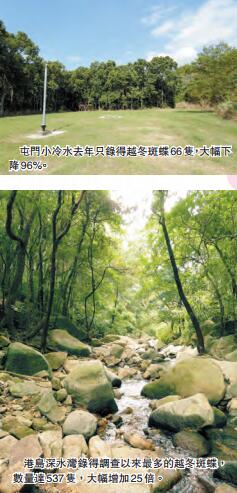 深水灣是港島區少數斑蝶越冬地之一,最新調查發現該地越冬斑蝶的數量大幅攀升至自調查以來新高,越冬斑蝶的物種和越冬習慣亦出現變化。
