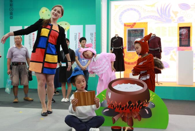 博大精深的传统文化如何更有趣的走进幼儿课堂?文博会现场表演的乐学乐园亲子中心的小朋友们给出了答案。身着华服的小朋友们登上T台,表演了《颜回吃粥》等儿童话剧,童真童趣的表演引发现场阵阵掌声。这些“好玩有趣”又极具创意的表演课,让孩子们在游戏中就学习了“见贤思齐”“人不知而不愠”等国学知识。