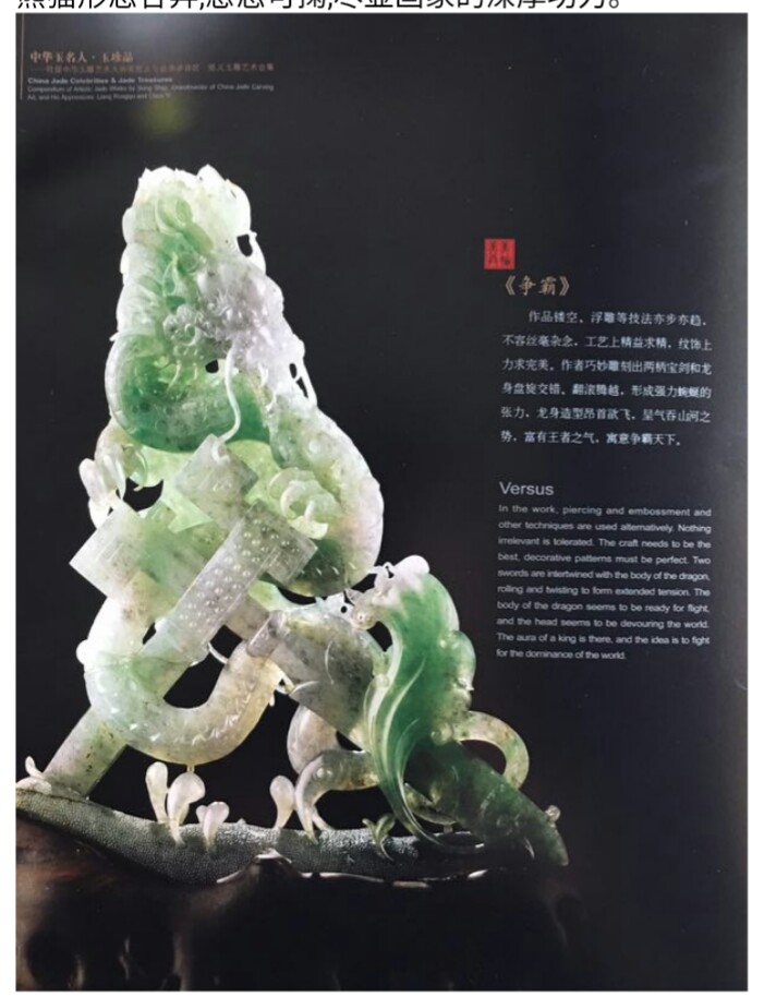 本屆文博會,國彬藝術空間繼續為市民帶來大師獨具匠心的作品。比如現場展出的玉雕作品《龍行天下—爭霸》就是一件不可多得的傳世佳作,作品鏤空、浮雕等技法運用自如,並在紋飾上力求完美,巧妙刻畫出兩把寶劍與蜿蜒的虯龍,富有王者之氣,意寓爭霸天下。同時還展出香港保利拍賣價值過億的“帝王綠”翡翠系列作品,專屬帝王級別打造的項鏈套裝與手鐲,中西融合的時尚設計引來市民陣陣驚歎,除了翡翠玉石藝術作品,同時還有來自國禮藝術家、國家一級美術大師溫亞平的國畫作品《百寶圖》,100只熊貓形態各異,憨態可掬,盡顯畫家的深厚功力。