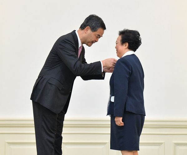 譚惠珠於2013年獲頒大紫荊勳章。 資料圖片