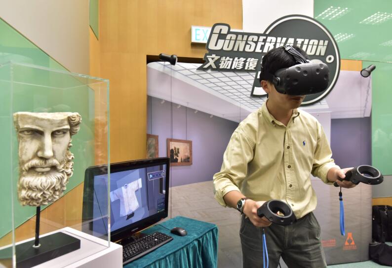 文物修復辦事處職員示范VR虛擬實境文物修復遊戲。