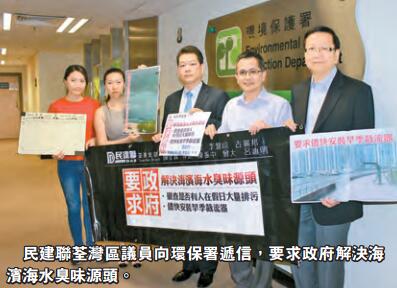 荃灣海濱臭味擾民多年,於夏季及退潮時尤其嚴重,市民甚至需要掩鼻而行,沿岸居民更深受臭味影響多年,就算在家裏,如海濱花園、海灣花園,及祈德尊新邨等屋苑,也可嗅到,影響生活質素。而且,荃灣西港鐵站一帶即將有多個新樓盤入夥,受影響的人數會持續增加,海濱臭味擾民,政府必須要盡快處理。