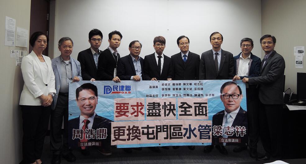 民建聯屯門區議員約見水務署,要求盡快全面更換屯門區水管,左二為屯門區議會主席梁健文。