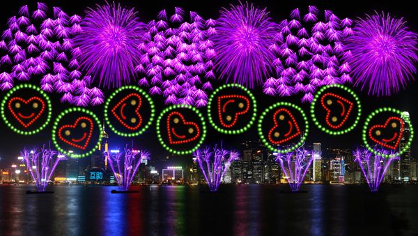 煙花匯演第2幕,出現「紅色的心形笑臉」。
