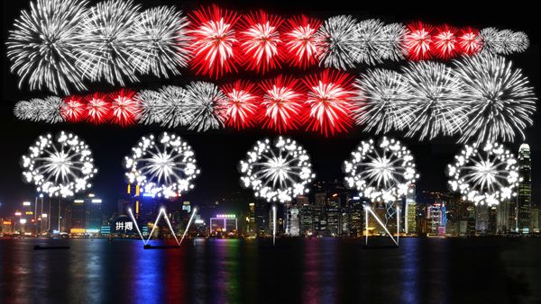煙花匯演第1幕,有「中國HK」字眼煙花。