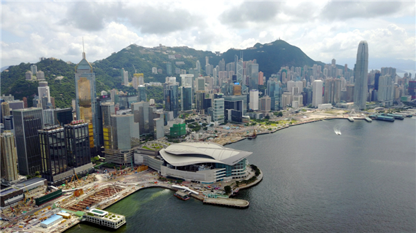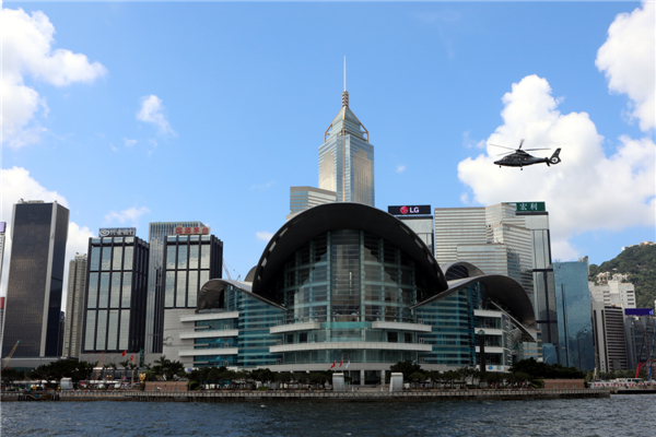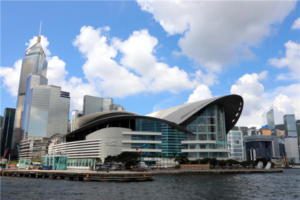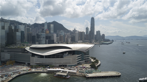 这是位于香港湾仔维多利亚湾之畔的香港会议展览中心(6月10日摄)。新华社