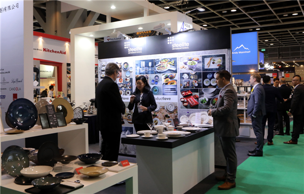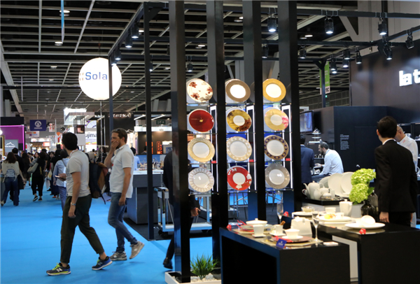 顾客在香港会展中心举行的国际食品及餐饮设备展上参观(5月8日摄)。