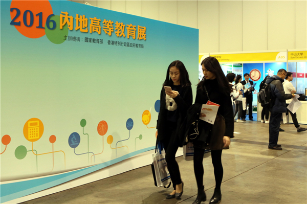 参观者在香港会展中心举行的2016内地高等教育展上参观(2016年12月17日摄)。