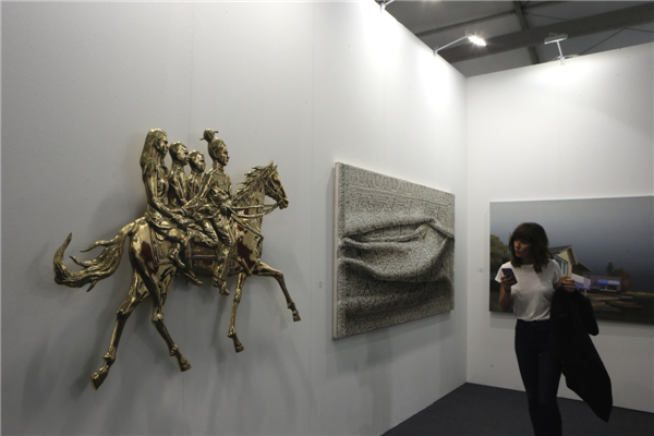 观众在香港会展中心举行的香港巴塞尔艺术展上参观(3月21日摄)。