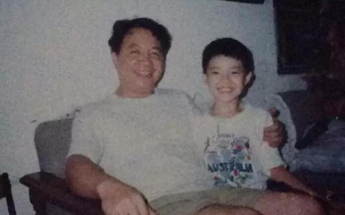 一九九七年七月一日香港回归的前一晚,我应邀到阿张家里喝酒,这是我拍下了上面这张阿张与其次儿的合影。当时他小儿十岁,现在30岁。