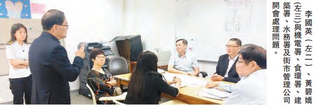 社區主任鍾文輝接到市民求助後,聯同區議員黃碧嬌及李國英前往大埔墟綜合大樓視察跟進個案,聆聽商戶及食肆負責人的訴求。他們立即聯絡不同部門,如機電署、食環署、建築署、水務署及街市管理公司等共同處理問題,要求水務署搶修、設立臨時供水站及派出工作人員拉喉供水等,直至供水回復正常為止,替商戶解決燃眉之急。