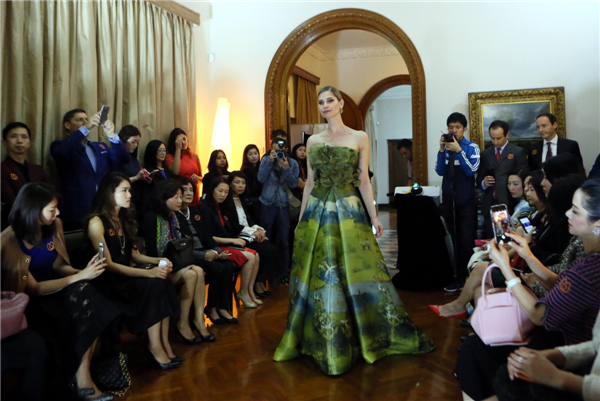 模特在香港展示荷兰时装设计师克罗梅纳克设计的时装(4月12日摄)。