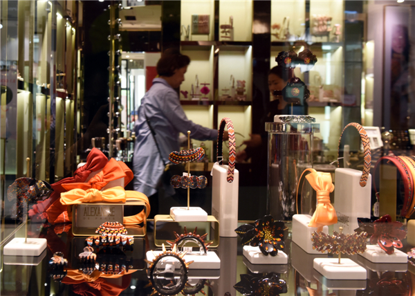香港铜锣湾一家商铺的橱窗展示各色发饰(5月26日摄)。