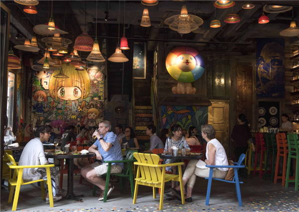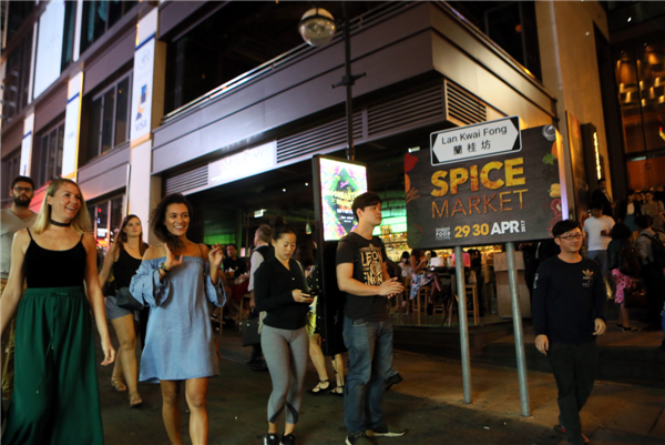 人们在香港中环兰桂坊游览(4月28日摄)。