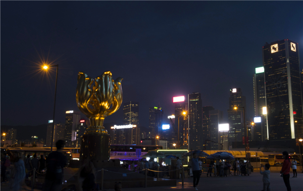 夜色中的香港中环海滨(5月29日摄)。新华社