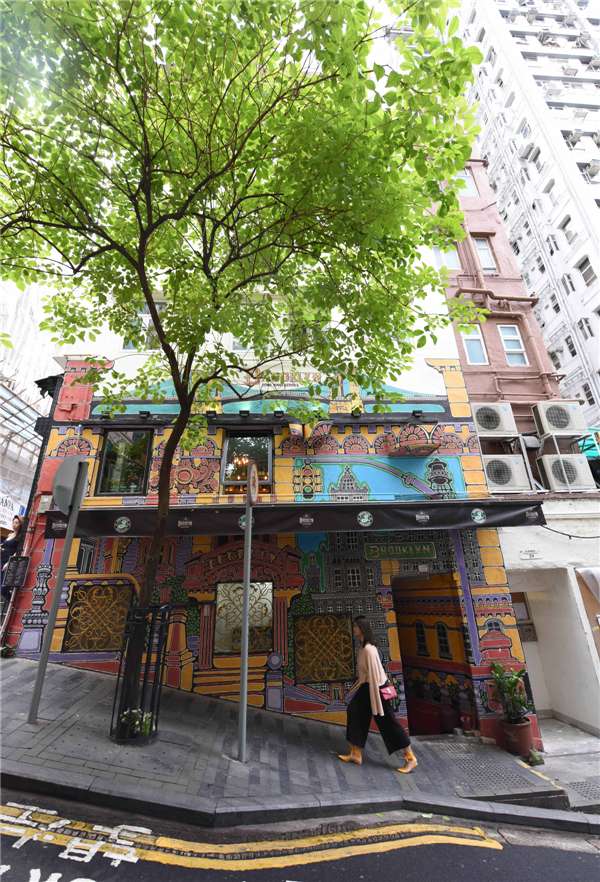 一名女士走过香港中环士丹顿街一间酒吧(5月27日摄)。