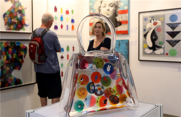 观众在香港第五届“买得起的艺术博览会”上参观(5月19日摄)。
