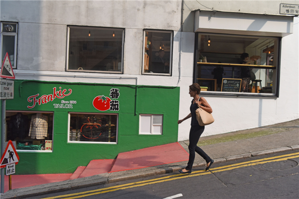 一名女士走过香港中环一家裁缝店(5月5日摄)。