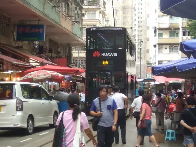 电车在春秧街的两头,转进来,拐出去,轮与轨发出gigi的摩擦声,与从店摊发出的吆喝声,交相辉映,像是交响曲的“辅音”。据说,1953年开始出现“电车走在市集里”的奇景,当时电东行线的终点站由铜锣湾延伸到北角,但是英皇道的宽度不足以让电车掉头。于是电车公司铺了春秧街支线,成了这里的独特风景线。