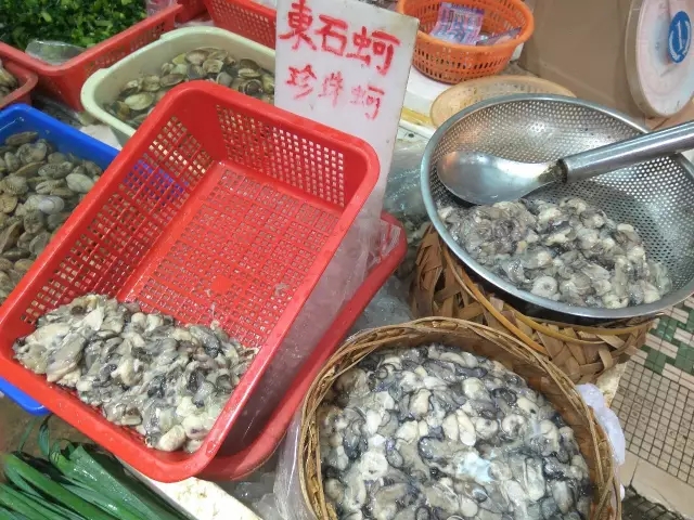 “何止半山。菲律宾的、马来亚的、新加坡的、大陆的都来春秧街采购!”说这话的是一唱一和的俩掌柜。她们卖着海产品,有蚵仔(牡蛎)、闽南人叫“摊仔”的蛏子。我指着一个牌子写着“东石珍珠蚵”的蚵仔问,这种多少钱?64元一斤!年长的掌柜的答。我称她青蚵仔嫂。这种呢?稍微差一点,我们叫厦门蚵,48元。