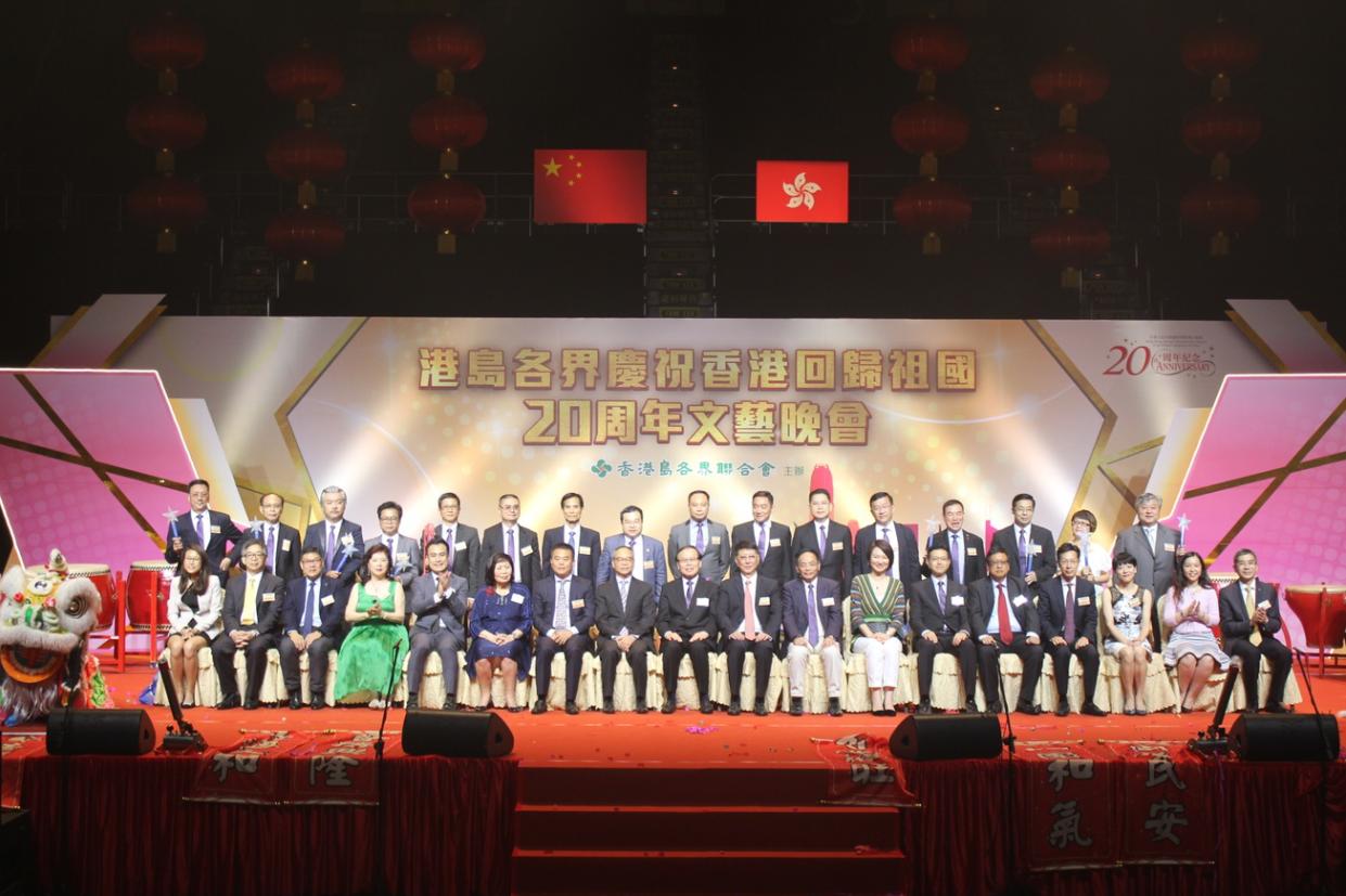 「港島各界慶祝香港回歸祖國二十周年文藝晚會」上,賓主大合照。