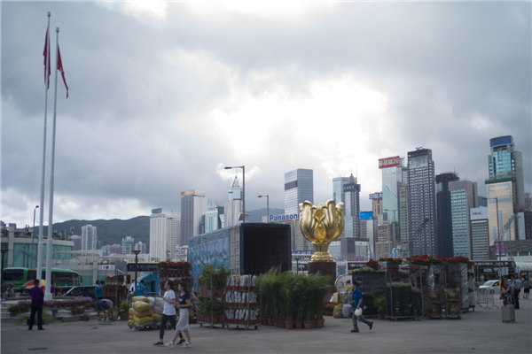 6月27日,香港金紫荆广场开始布置鲜花,香港庆祝回归祖国20周年气氛渐浓。中新社