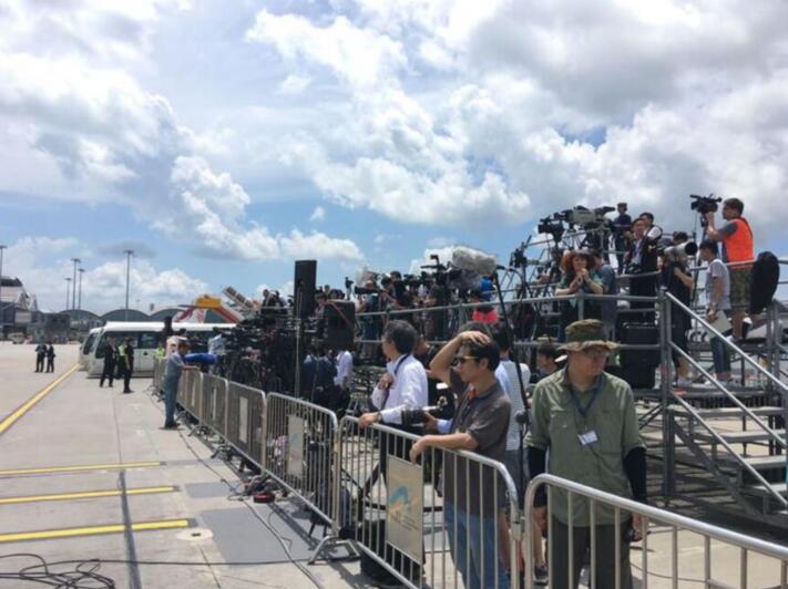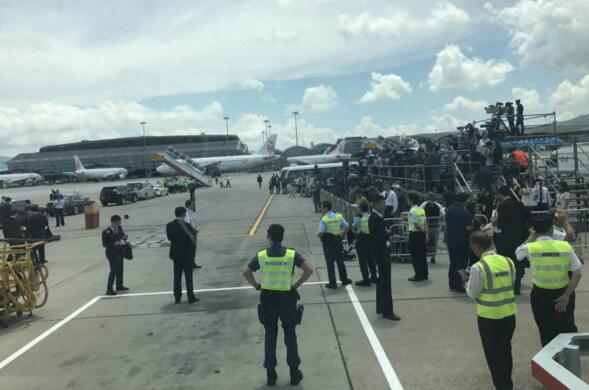 今日上午,香港赤鱲角機場超過100家傳媒,200多位記者在現場守候採訪。機場方面亦採取嚴密安保措施,傳媒需要先進行安全檢測可進入禁區範圍。