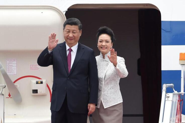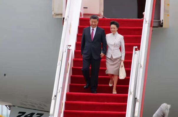 习近平及其夫人彭丽媛走出机舱(路透社)