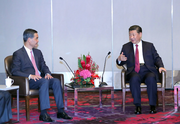 國家主席習近平昨日在港會見行政長官梁振英。新華社