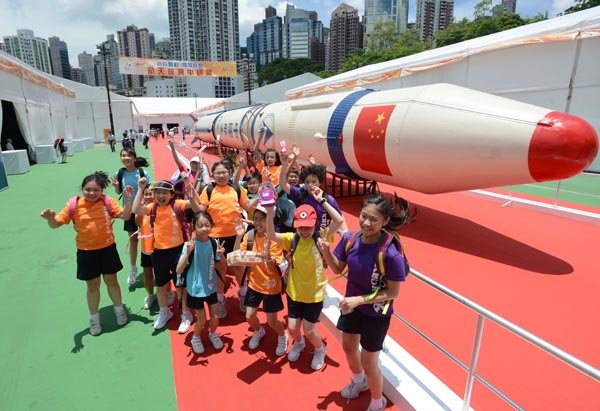 在維多利亞公園舉行的「創科驅動成就夢想」科技展由6月29日至7月2日一連4日舉行。昨早10點開始,大批市民陸續入場參觀,在場內放置在中央的長征一號備用火箭,成為了市民「打卡」、「自拍」的景點,無論任何時候都有人舉起手機、相機拍照。