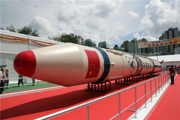 6月29日,曾参与1984年国庆阅兵的长征一号火箭备用箭在香港展出。