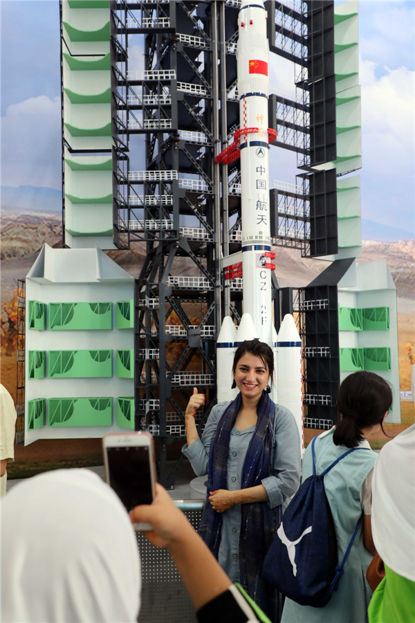 6月29日,在香港的南亚裔师生兴致勃勃参观中国航天科技展。