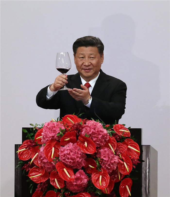 6月30日晚,国家主席习近平出席香港特别行政区政府欢迎晚宴并发表重要讲话。新华社