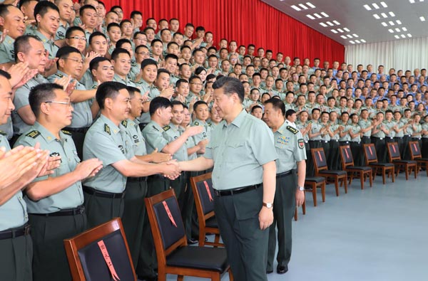 檢閱結束后,習近平接見了駐香港部隊機關和直屬單位團以上干部,同大家親切握手、合影留念。
